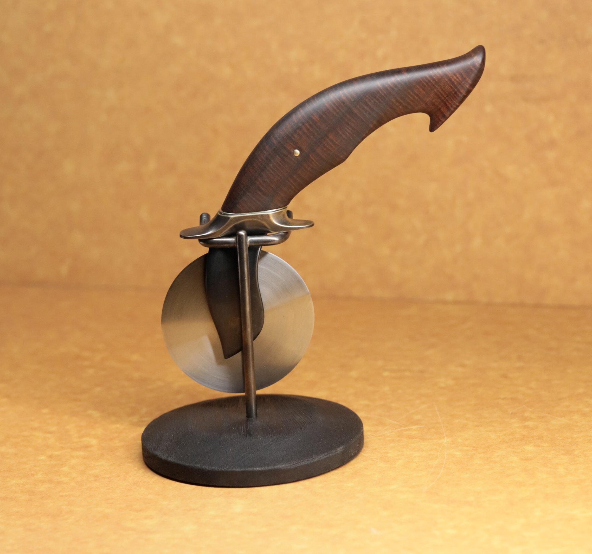 The carbon steel blade and blackened brass will patina and show the marks of every day of use. Bring on the pizza!