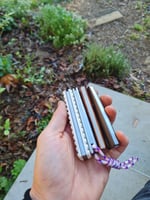 Latest run of slipjoints. All are nitro v blades and springs with hidden hardware. All are very near 110mm closed with 2.5mm thick 80mm long blades, running on phosphor bronze washers.
